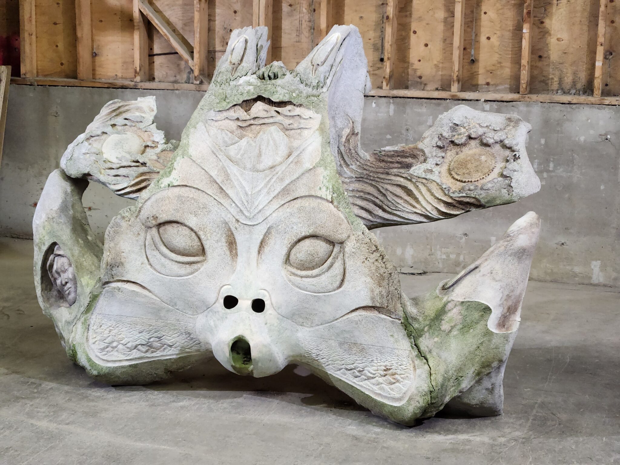 23 artistes venus d’un peu partout ont été sélectionnés. Certains ont amené avec eux des œuvres monumentales. Cette sculpture de l’artiste Billy Gauthier, Inuk du Nunatsiavut au Labrador, a été réalisée dans un crâne de baleine.