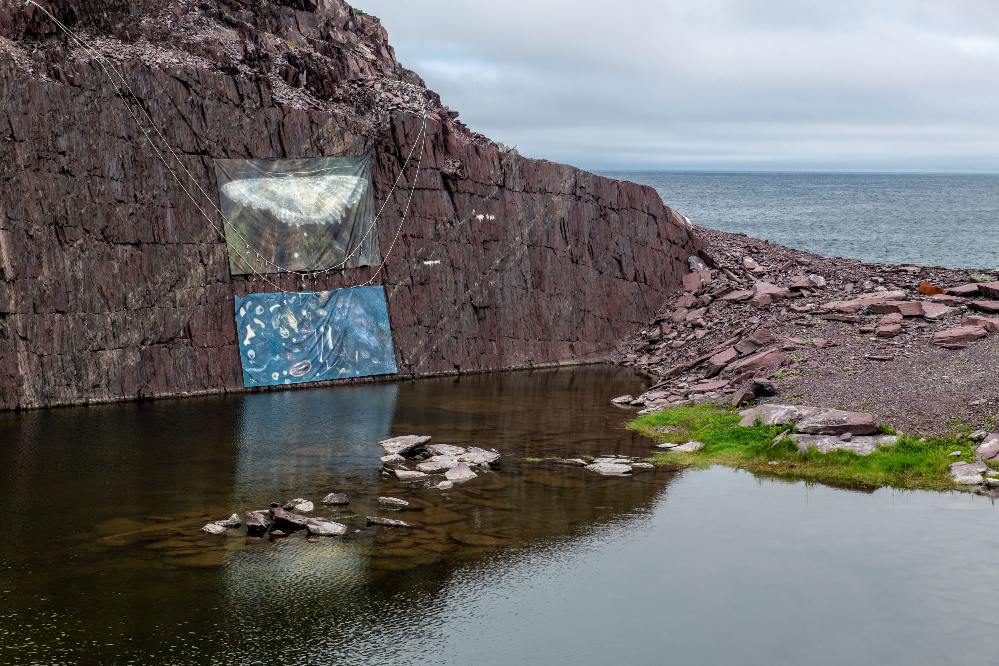 Cette année, on en est donc à la 4ème édition. Cette fois, on a innové en incorporant des performances scéniques en plein air. On a aussi installé des œuvres ludiques, comme ces énormes hameçons de l’artiste Couzyn Von Heuvelen, du Nunavut qui pendent à flanc de falaise.