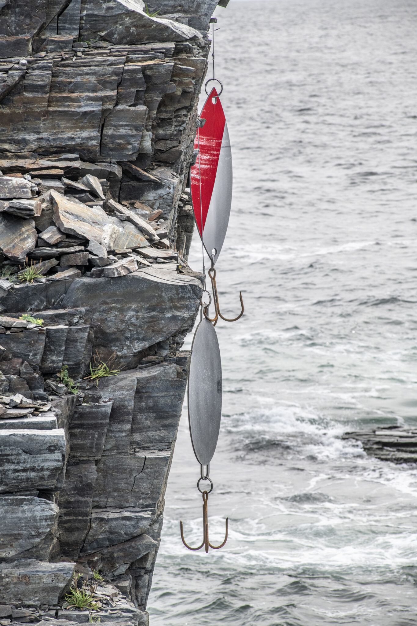 Cette année, on en est donc à la 4ème édition. Cette fois, on a innové en incorporant des performances scéniques en plein air. On a aussi installé des œuvres ludiques, comme ces énormes hameçons de l’artiste Couzyn Von Heuvelen, du Nunavut qui pendent à flanc de falaise.