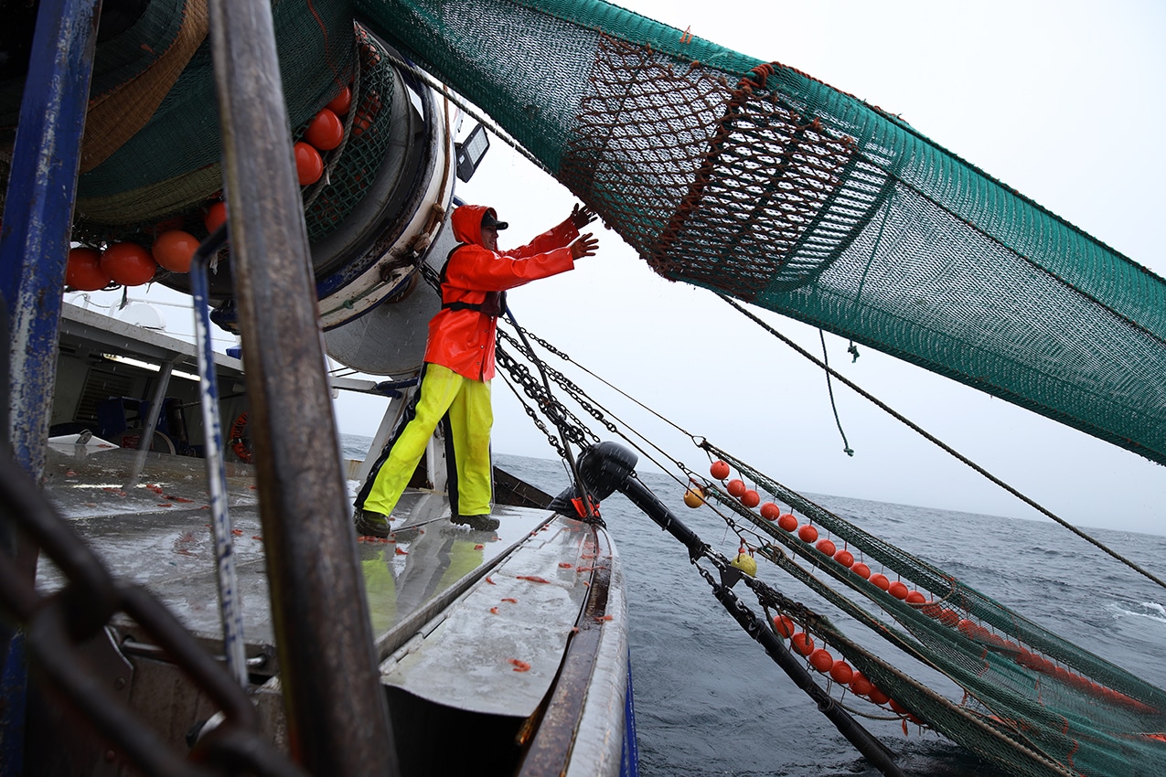 Dès 1h45, l’équipage est déjà à l’œuvre. Cette première levée des chaluts dans la nuit se déroule sous la lumière éblouissante des projecteurs du bateau.