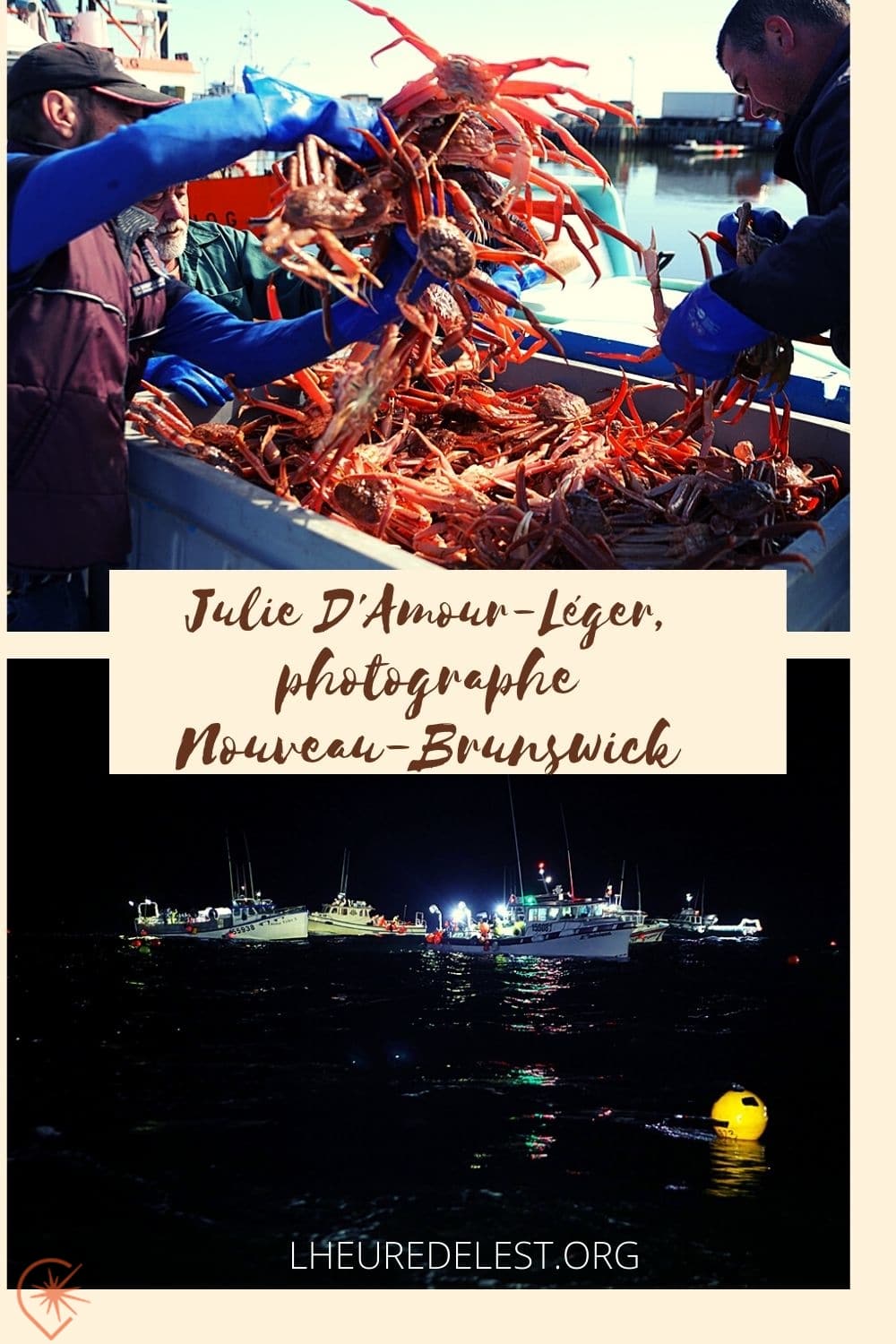 Elle y découvre un monde dont elle ignorait tout! L’aspect fantastique la nuit, lorsque les bateaux brillent de tous leurs feux sur l’océan, la camaraderie, l’entraide, le travail épuisant dans le froid…