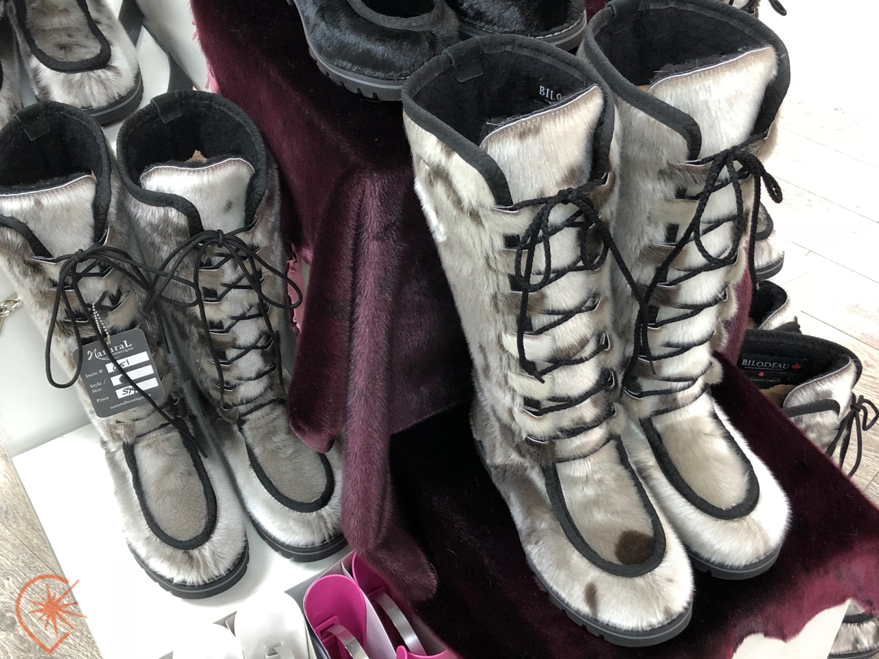 Ce qui est nouveau, c’est bien le regain d’intérêt pour ces articles, autrefois démodés et un peu ringards. Les vêtements en peau de phoque sont maintenant très prisés et on les porte avec fierté. De là à devenir une sorte d’emblème de l’identité madelinienne il n’y a qu’un petit pas que certains ont déjà franchis. Petite précision : les photos ici ont été prises dans la superbe boutique The Natural Boutique, sur Water Street à Saint-Jean de Terre-Neuve. Les peaux tannées et teintes sont en vente dans des supermarchés de quartier à Saint-Jean de Terre-Neuve également, chez Colemans.