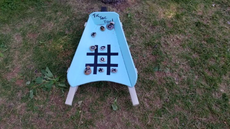 Elle me montre les œuvres en verre qui sont disposées dans les sous-bois (et qu’on retrouve en vente dans la boutique). Elle attire aussi mon attention sur les jeux disposés ici et là pour les enfants.