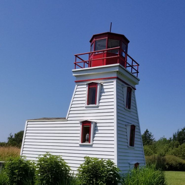 Ensuite, Angie me montre le petit phare, au milieu du jardin, réplique de celui dans lequel Monsieur Arsenault a travaillé (et vécu avec sa famille) à Cap-Egmont.