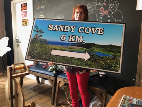 Et ça marche !!! Figurez-vous que depuis l’ouverture il vient des visiteurs du monde entier (au passage : Terre-Neuve c’est 500 000 touristes par an). Savez-vous pourquoi ils s’intéressent à l’endroit ? parce que Lord’s Cove est juste à côté d’une plage (froide !), Sandy Cove, qui présente les meilleures vagues de surf de toute la province. Une anse jusqu’à présent totalement ignorée. Elles ont su mettre leur petit village sur un itinéraire touristique : Phyllis et ses copines ont même servi des surfeurs Hawaïens dans leur boutique. Elles n’en sont toujours pas revenues !!