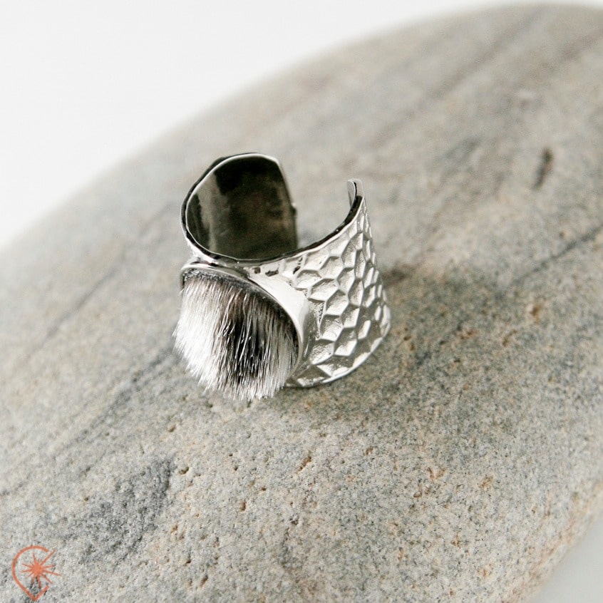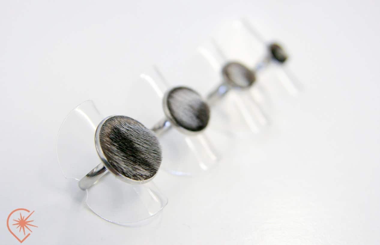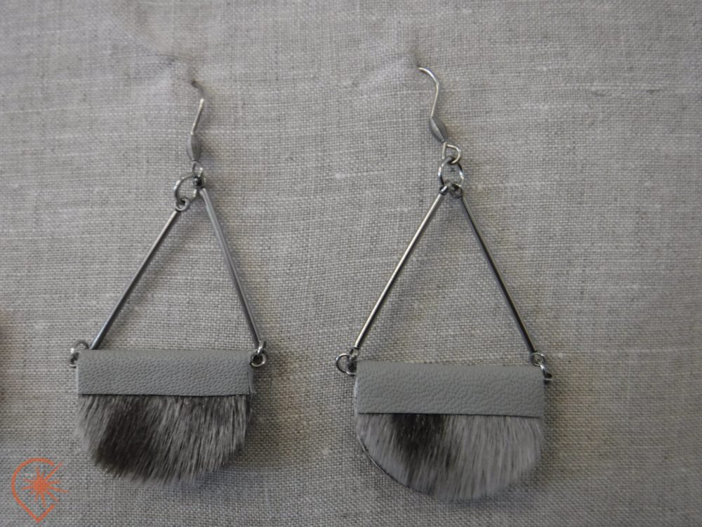 Plus surprenant : les bijoux. Des bagues, bracelets, boucles d’oreilles mettant en valeur des petites pièces de fourrure : « pour nous c’est très important de ne pas perdre une miette de fourrure. C’est une ressource animale que nous travaillons avec le plus grand respect » et c’est cette philosophie qui a poussé Rachel Drouin à créer la collection de bijoux Les Louves. Et le résultat est … magnifique !