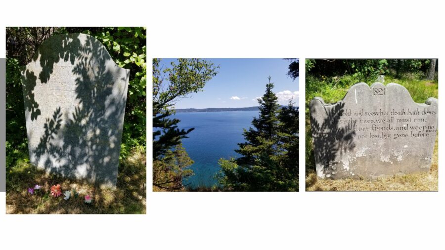 Si nous n’avons pas pu trouver trace de ces pauvres marins, nous avons découvert, par contre, le plus ancien cimetière de l’île. Il date de la première moitié des années 1800 et est placé sur une hauteur, dans une clairière, face à la mer. Moment d’éternité!